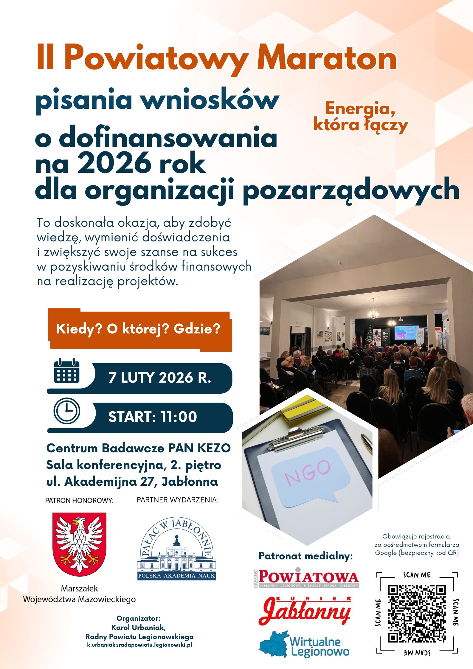 Udział wymaga wcześniejszej rejestracji. Liczba miejsc jest ograniczona, dlatego warto zapisać się jak najszybciej – formularz dostępny po zeskanowaniu kodu QR z plakatu lub przez Google – kliknij TUTAJ.