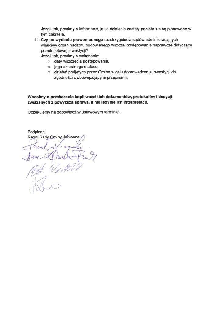 Na końcu wnoszą o przekazanie kopii wszystkich dokumentów, protokołów i decyzji związanych ze sprawą.